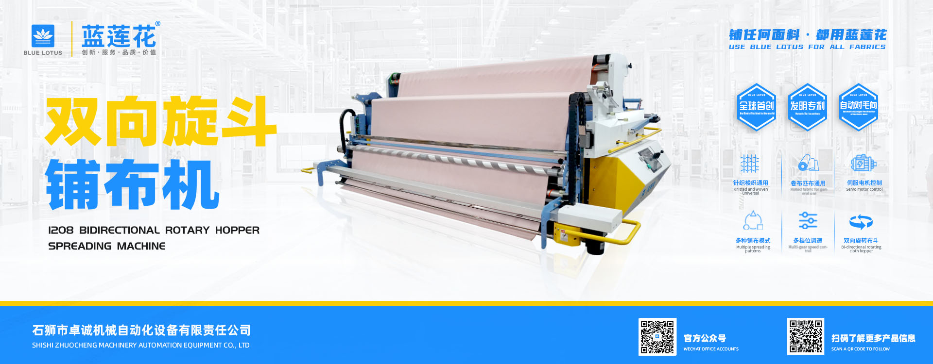 我司結(jié)合市場自主研發(fā)的藍蓮花品牌拉布機擁有多項自主專利技術(shù),機器以小巧多功能易操作低維護為特點,為業(yè)界提供性價比機型; 藍蓮花品牌拉布機以實用質(zhì)優(yōu)為特點自投產(chǎn)以來便在國內(nèi)贏得市場廣泛認可。